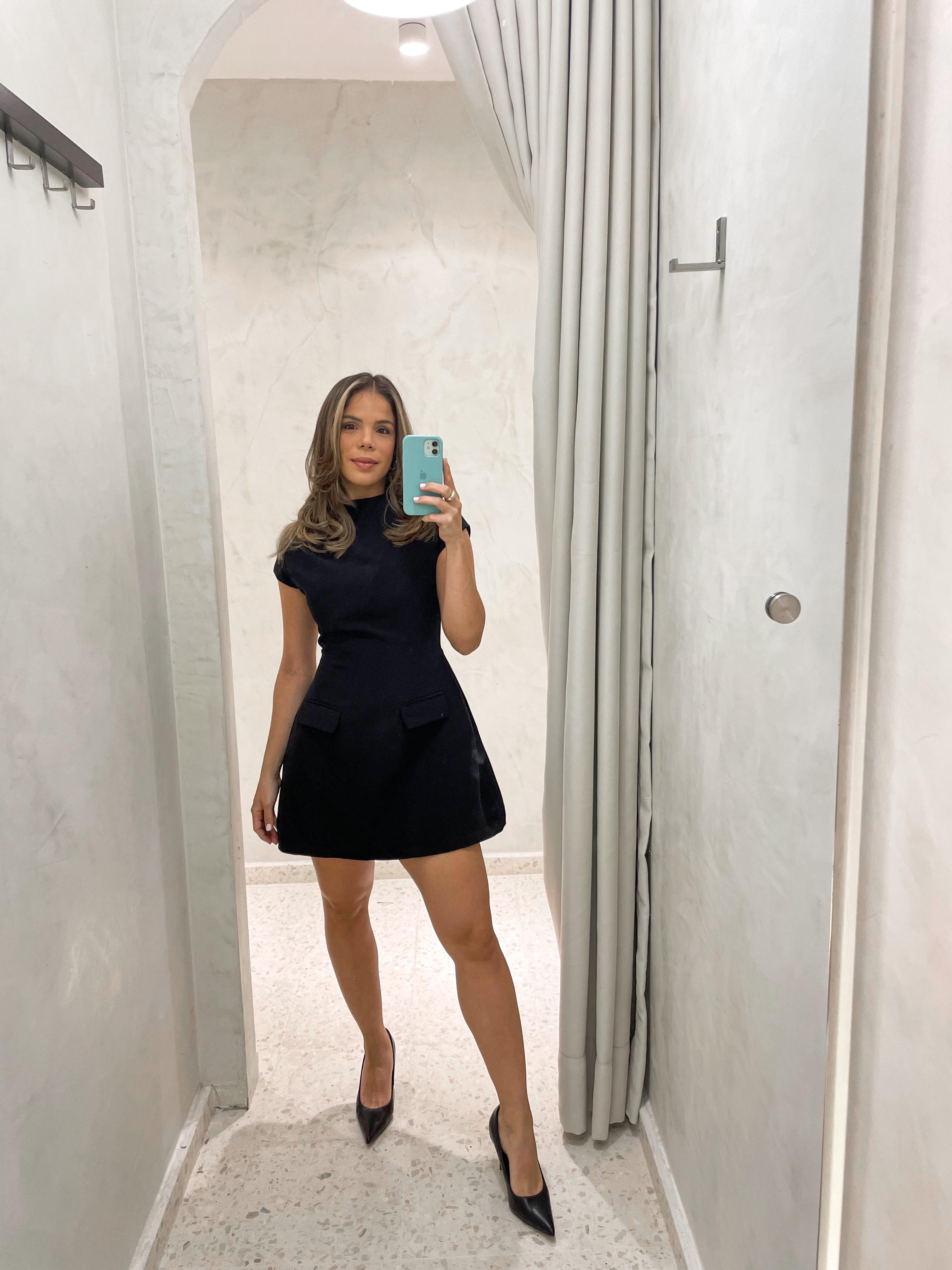 Con mangas cortas que ofrecen comodidad y versatilidad, y bolsillos discretamente integrados en la falda, este vestido es tanto chic como conveniente.